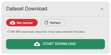 the START DOWNLOAD button is presented. If the application detects that the datasets are present in the browser cache,